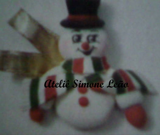 Fiz no natal passado para a minha geladeira, sem moldes, manualmente fiz a modelagem, no olho usei uma continha bem pequena azul cintilante, os óculos são de arame fino, ficou uma graça, e deixo para voçês esta idéia esperando que aproveitem algo.