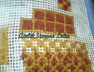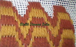 Lembrem a escolha da cor para o trabalho é fundamental, quando fiz estas amostras usei as cores que tinha,ou seja restos de lã, não fiz combinações apenas queria os modelos para produzir alguns tapetes.