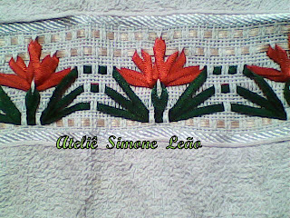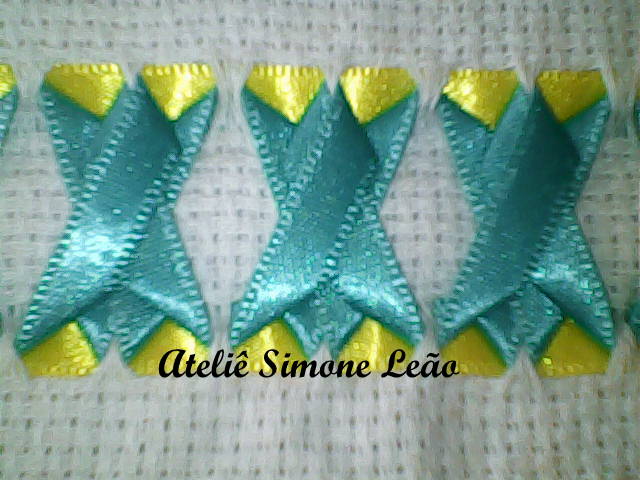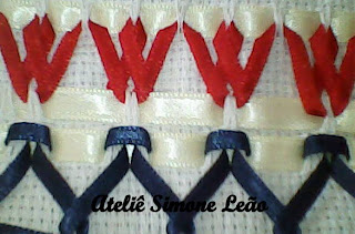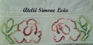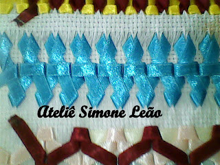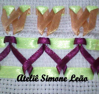 Este modelo numa barra de toalha de banho.Vou postar alguns dos modelos de bordado em fita em que costumo ensinar as minhas alunas, e fazer meus trabalhos.