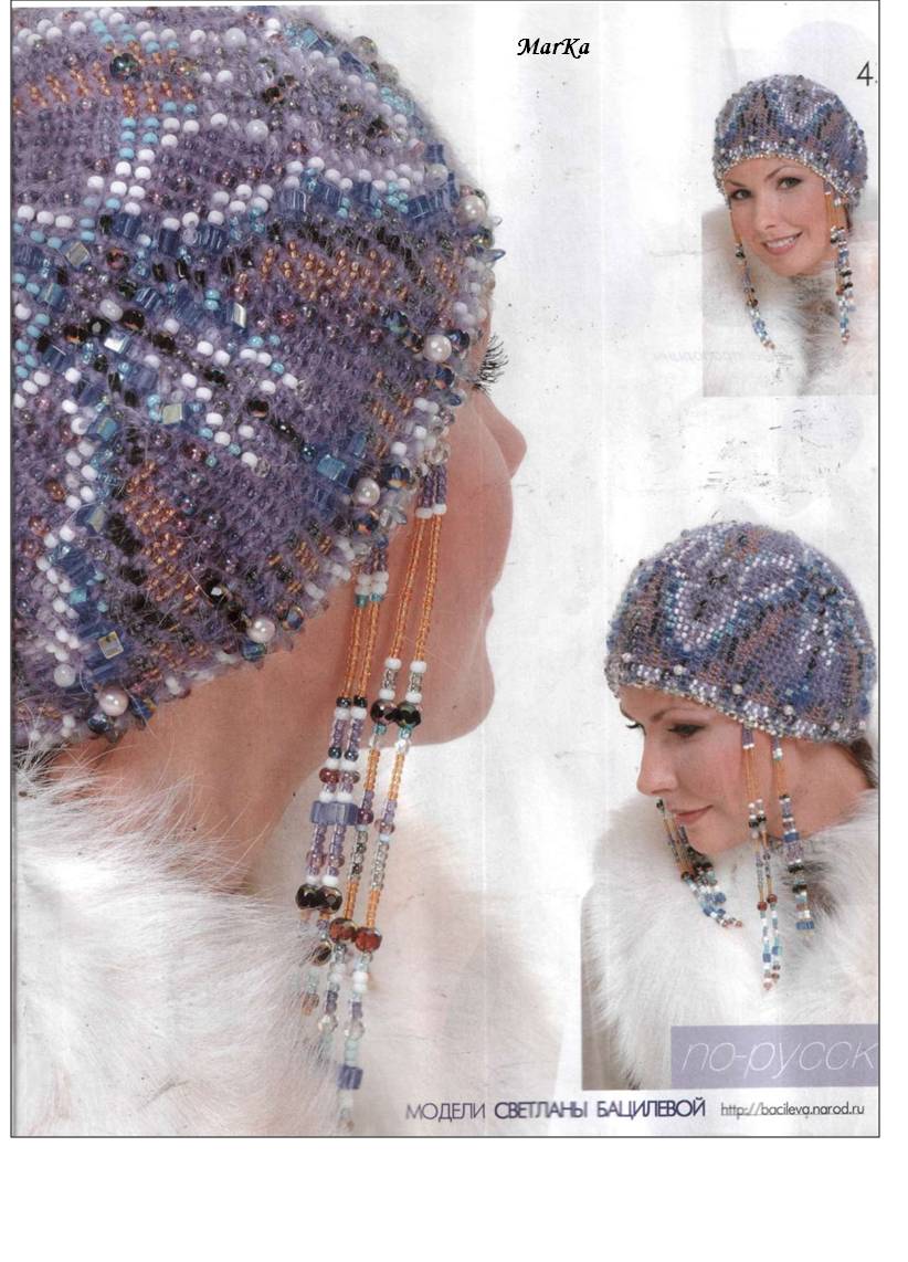 Boina em crohet depois bordada em pedraria ou se quiser coloca as continhas na linha e vai fazendo o crochet de acordo com o seu gosto.
